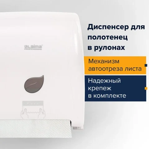 Диспенсер для полотенец в рулонах Laima Eco Н1, белый, пластиковый, 606550