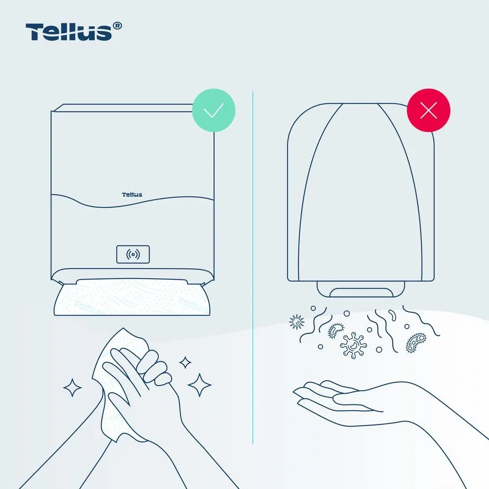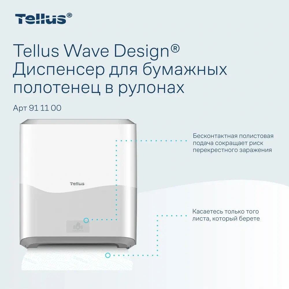 Tellus Matic Solution® - это инновационный диспенсер для полотенец в рулонах, предназначенный для обеспечения максимальной гигиены и удобства в туалетных комнатах с высокой проходимостью. Благодаря сенсорной технологии и бесконтактной подаче полотенец, устройство минимизирует риск перекрестного загрязнения, что делает его подходящим для общественных мест, офисов, ресторанов и гостиниц.