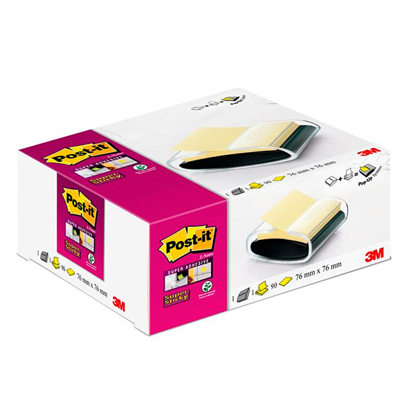 Диспенсер для стикеров Post-It Super Sticky прозрачный, стикеры, 76х76мм, канареечно желтые