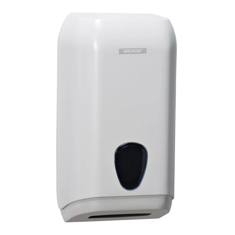 Диспенсер Katrin для туалетной бумаги на 2 пачки. Имеет окошко для контроля за наличием расходного материала. Имеет запорный механизм предотвращающий кражу бумаги. Материал: ударопрочный пластик ABS.