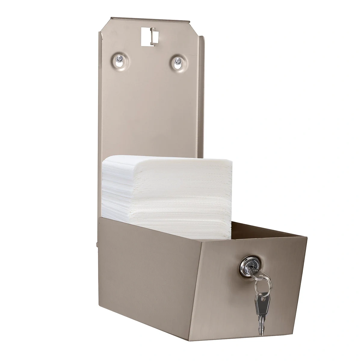 Диспенсер туалетной бумаги в листах металлический 'MERIDA STELLA R' (Anti Finger) Элегантный и практичный диспенсер для туалетной бумаги в листах 'MERIDA STELLA R' выполнен из нержавеющей стали с покрытием Anti Finger, предотвращающим образование отпечатков пальцев. Его стильный и прочный корпус обеспечивает надежную эксплуатацию в общественных санузлах. Компактный размер делает его удобным для размещения в небольших помещениях. Преимущества: Покрытие Anti Finger, предотвращающее появление отпечатков пальцев. Изготовлен из нержавеющей стали AISI304 толщиной 1 мм. Российское производство. Корпус из нержавеющей стали AISI 304 толщиной 1 мм обеспечивает долговечность и прочность. Технические характеристики: Материал: Нержавеющая сталь AISI304 с покрытием Anti Finger Цвет: Матовый Размеры (Д ? Ш ? В): 12,5 ? 11 ? 26 см Масса: 1,35 кг Вместимость: 400 листов Уход: Для регулярной гигиены поверхности диспенсера используйте очиститель-полироль CEMO. Нанесите средство на протирочную салфетку CM002 и аккуратно протрите поверхность для поддержания чистоты и сохранения внешнего вида.