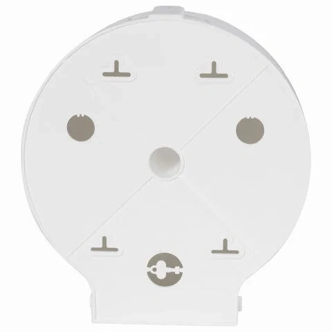 Антивандальный корпус изготовлен из ударопрочного ABS-пластика. Предназначен для подачи профессиональной туалетной бумаги в больших рулонах с намоткой до 525 м. Обеспечивает высокий уровень гигиены и комфортную подачу туалетной бумаги. Имеется окошко для контроля остатка расходных материалов. Сочетается с расходными материалами других производителей. Оборудован самозахлопывающимся замком с ключом. В комплект входят крепежные материалы для установки.