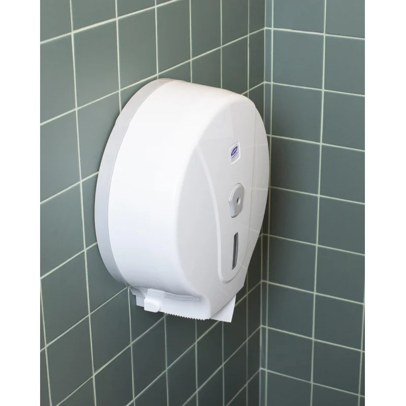 Диспенсер для туалетной бумаги в рулонах Luscan Professional идеально подходит для использования в местах со средней и высокой проходимостью, таких как туалетная комната в ресторане, офисе, торговом центре, аэропорту, железнодорожном вокзале. Диспенсер для туалетной бумаги имеет эргономичную форму и компактные размеры. Изготовлен из высококачественного белого ABS-пластика.