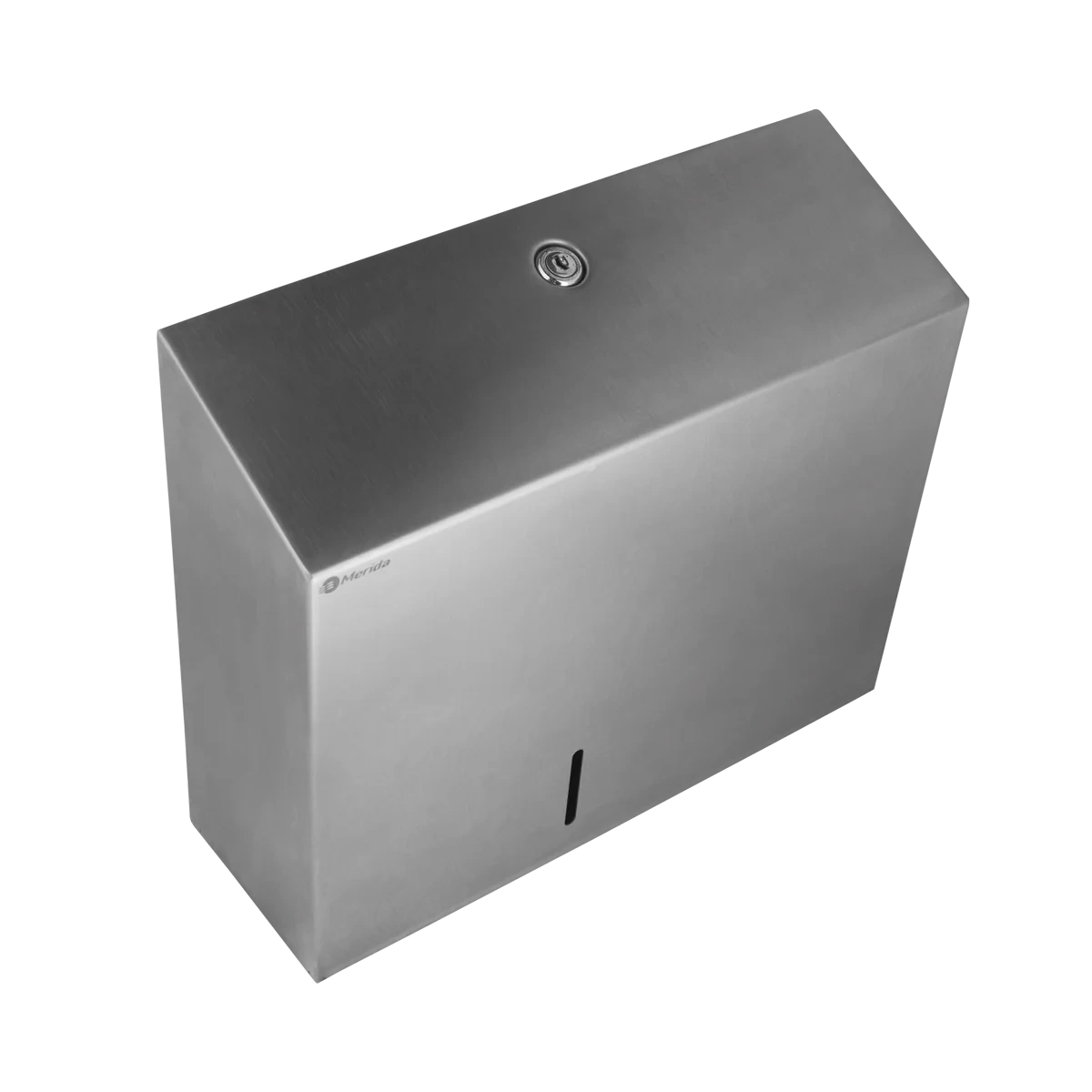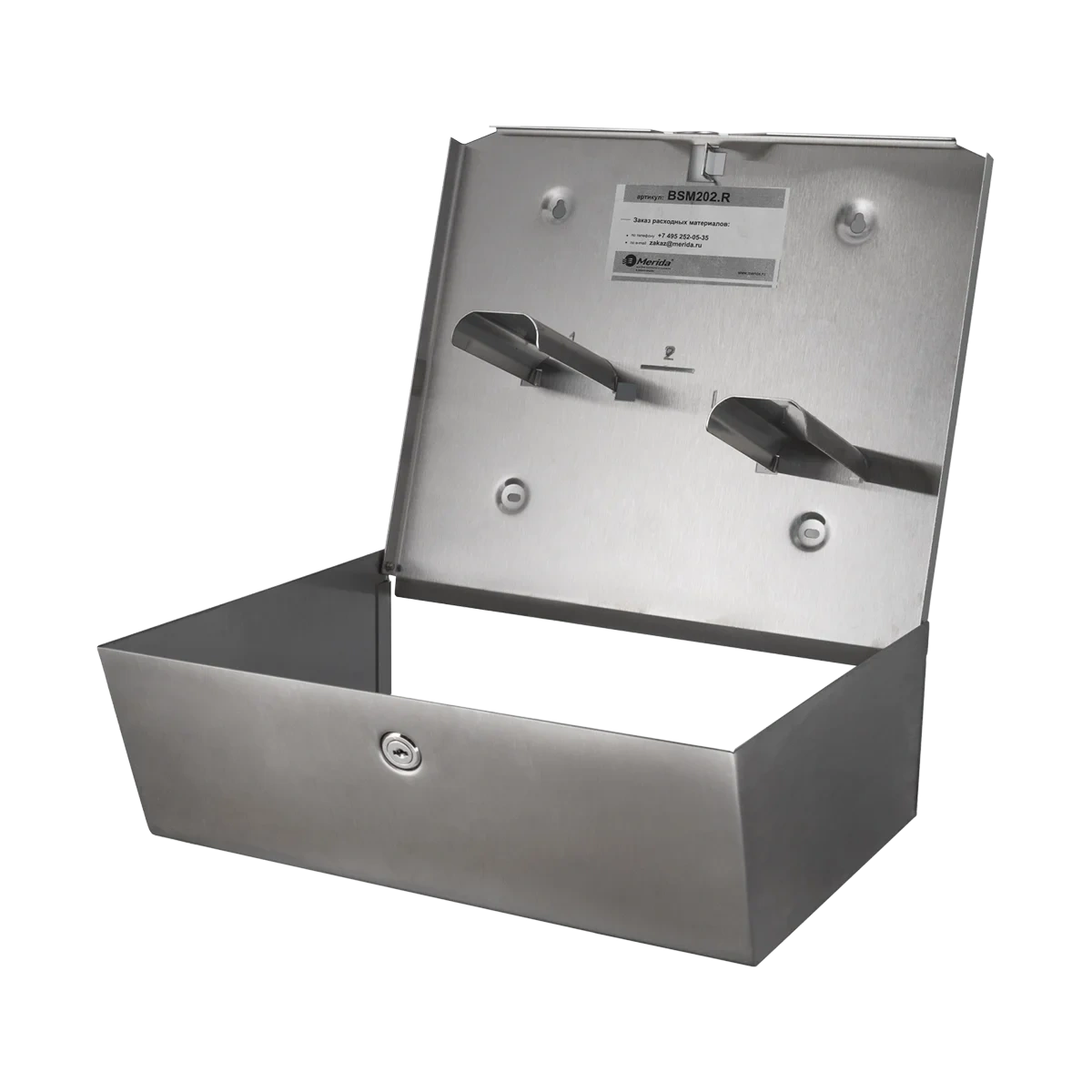 Диспенсер туалетной бумаги металлический 'MERIDA STELLA R DUO' (матовый) Диспенсер 'MERIDA STELLA R DUO' — это удобное устройство для выдачи туалетной бумаги, позволяющее устанавливать два рулона (основной и остаточный). Он поддерживает возможность установки двух рулонов диаметром 20 см и 10 см или одного рулона диаметром до 22 см, что обеспечивает бесперебойную подачу бумаги. Преимущества: Удобство использования благодаря возможности установки двух рулонов. Российское производство. Корпус из нержавеющей стали AISI 304 толщиной 1 мм обеспечивает долговечность и прочность. Технические характеристики: Материал: Нержавеющая сталь Цвет: Матовый Размеры (Д ? Ш ? В): 33 ? 11 ? 29 см Масса: 2,7 кг Вместимость: Два рулона диаметром до 20 см и 10 см или один рулон до 22 см Уход: Для регулярной гигиены поверхности используйте очиститель-полироль CEMO. Нанесите средство на протирочную салфетку CM002 и аккуратно протрите поверхность для поддержания чистоты и сохранения внешнего вида.