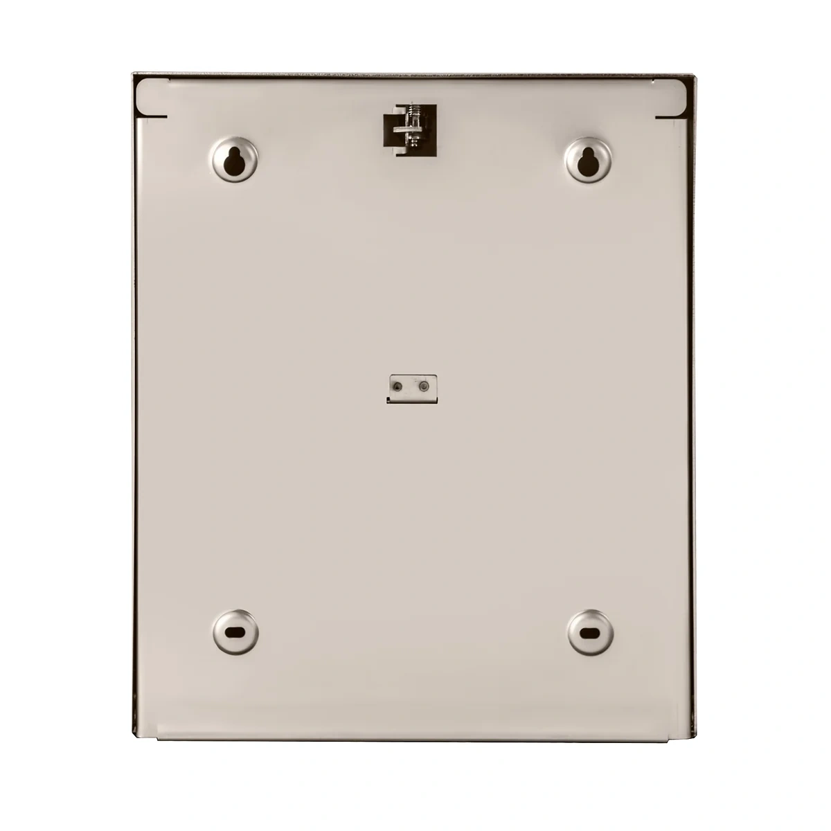 Диспенсер туалетной бумаги 'MERIDA STELLA R' MINI (Anti Finger) Диспенсер 'MERIDA STELLA R' MINI разработан для удобного использования в общественных туалетных комнатах. Изготовленный из нержавеющей стали AISI 304 толщиной 1 мм с покрытием Anti Finger, он предотвращает образование отпечатков пальцев, обеспечивая чистоту и презентабельный вид. Диспенсер вмещает рулоны диаметром до 21 см, что делает его практичным и функциональным. Преимущества: Вместимость для рулонов диаметром до 21 см упрощает процесс замены. Покрытие Anti Finger предотвращает образование отпечатков пальцев и облегчает уход. Российское производство. Корпус из нержавеющей стали AISI 304 толщиной 1 мм обеспечивает долговечность и прочность. Технические характеристики: Материал: Нержавеющая сталь AISI 304 Цвет: Металлический Размеры (Д ? Ш ? В): 33,5 ? 28 ? 12 см Масса: 1,9 кг Вместимость: Диаметр рулона до 21 см Уход: Для регулярной гигиены поверхности диспенсера используйте очиститель-полироль CEMO. Нанесите средство на протирочную салфетку CM002 и аккуратно протрите поверхность для поддержания чистоты и сохранения внешнего вида.