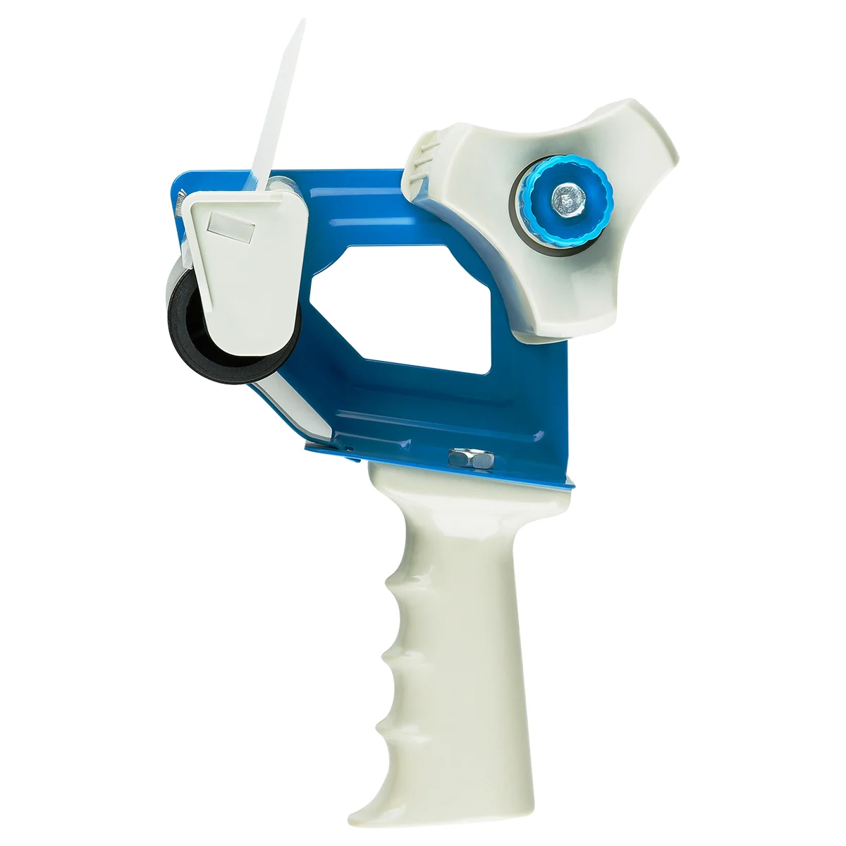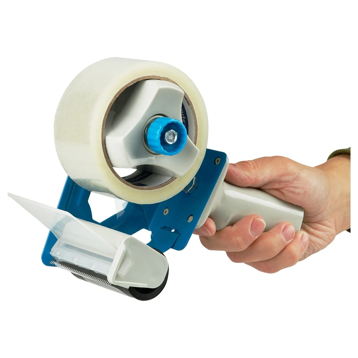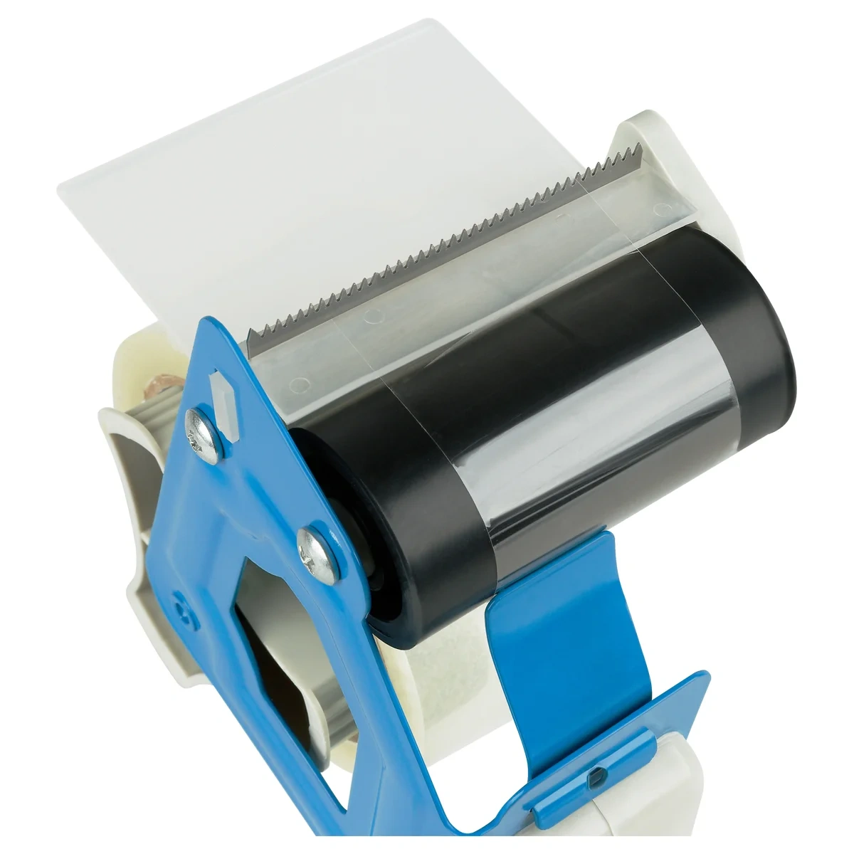 Диспенсер для упаковочной ленты шириной до 75 мм - это полезный рабочий инструмент для дома и офиса. Металлический корпус оснащён каучуковым прижимным валиком и металлическим отрезным ножом. Имеет удобную ручку из пластика. Держатель для блока клейкой ленты предотвращает попадание пыли на клейкую липкую поверхность и способствует лучшему натяжению и прочной, быстрой упаковке предметов.
