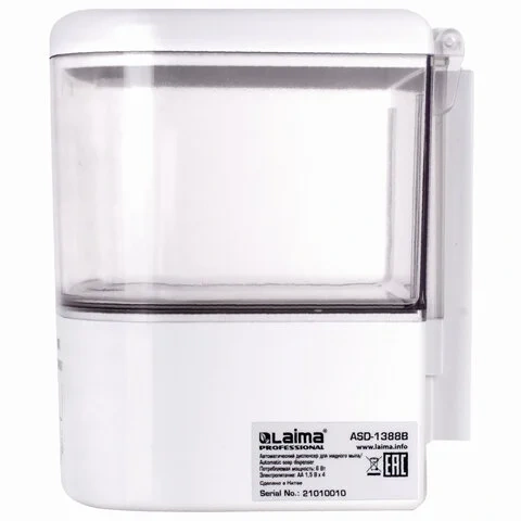 Диспенсер для мыла наливной Laima 600мл, белый, пластиковый, сенсорный, 607316