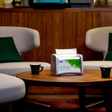 Диспенсер обеспечивает удобный доступ к салфеткам и позволяет контролировать их расход.