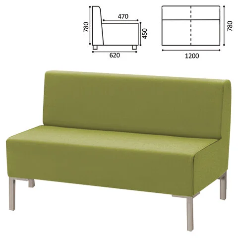 Диван мягкий двухместный 'Хост' М-43, 1200х620х780 мм, без подлокотников, экокожа, светло-зеленый