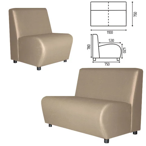 Диван мягкий двухместный 'Клауд', 'V-600', 1100х750х780 мм, без подлокотников, экокожа, бежевый