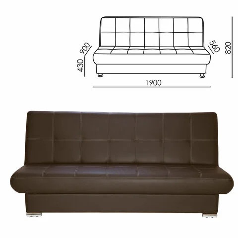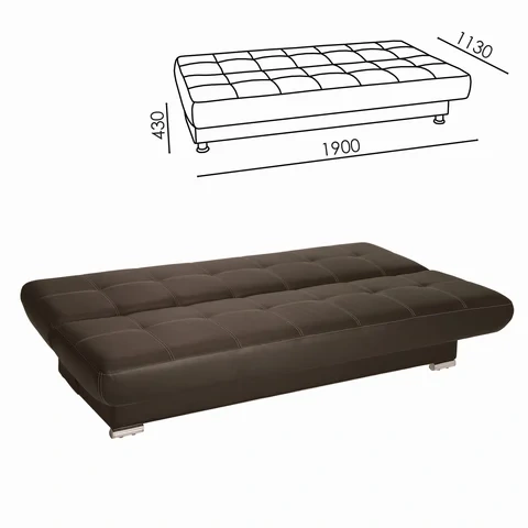 Диван мягкий раскладной 'Модесто', 1900х900х820 мм, экокожа, коричневый