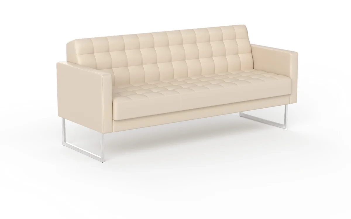 Прогрессивный, но легкий дизайн коллекции офисной мягкой мебели Варна притягивает взгляд. Офисный трехместный диван Варна выполнен из высококачественной экокожи, стильный геометрический рельеф сиденья и спинки и элегантные металлические опоры привносят нотку современного минимализма в планировку вашего офиса. Этот трехместный диван для офиса создано для современного делового пространства.