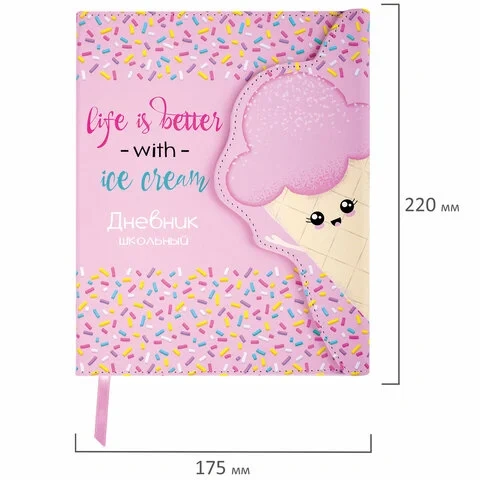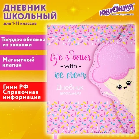 Дневник 1-11 класс 48 л., кожзам (твердая), магнитный клапан, ЮНЛАНДИЯ, 'Мороженка', 106184