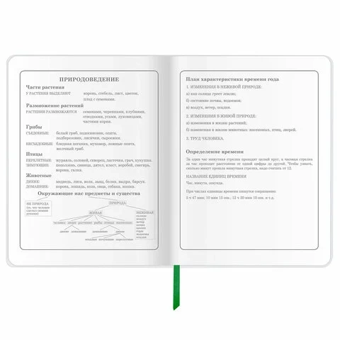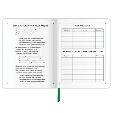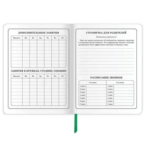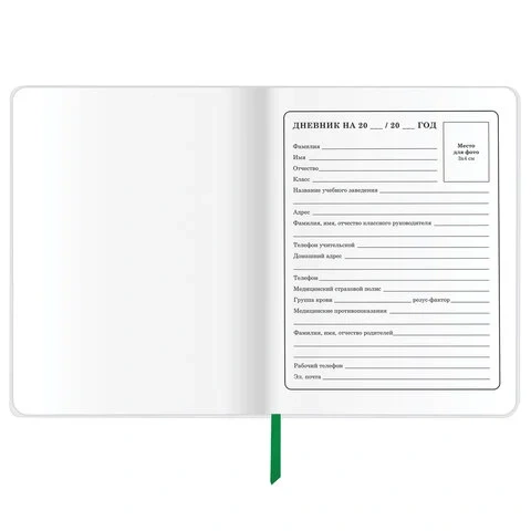 Предназначен для учащихся начальных классов. Интегральная обложка из экокожи надежно защищает бумагу и долго сохраняет привлекательный внешний вид, а тиснение фольгой придает изделию оригинальность. Внутренний блок содержит 48 листов и состоит из офсетной белой бумаги плотностью 70 г/м2. В справочном материале собраны основные подсказки для учащихся. Для удобства пользования дневник снабжен закладкой-ляссе.