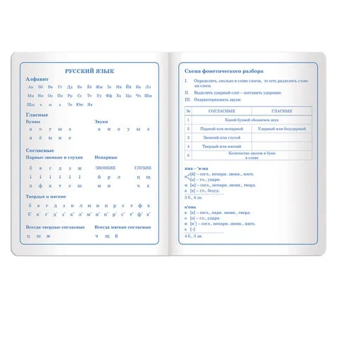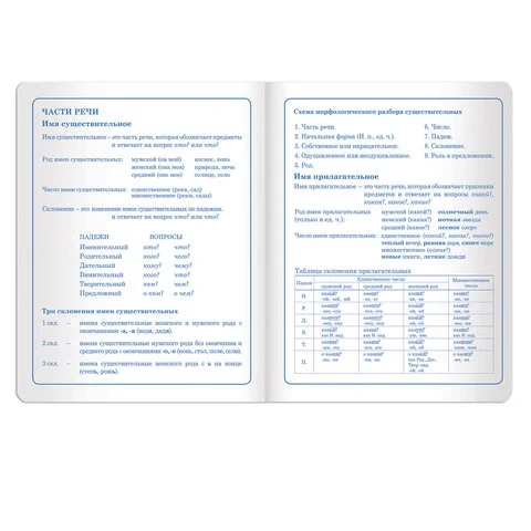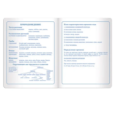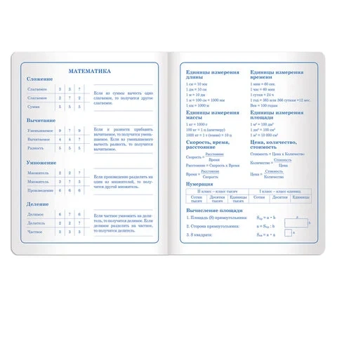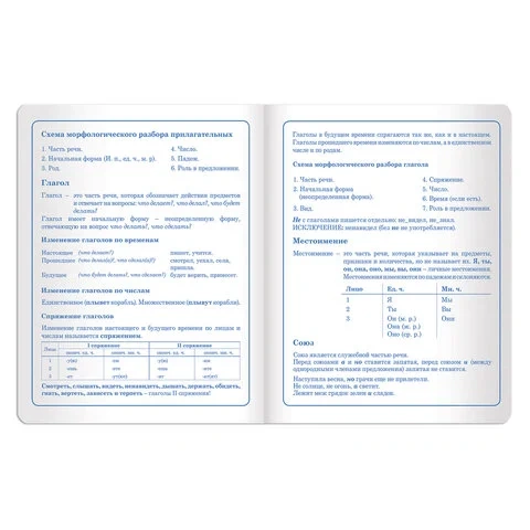Твердая обложка надежно защищает бумагу и долго сохраняет привлекательный внешний вид. Благодаря современным технологиям печати на материале из экокожи, краски на изображении становятся более яркими и насыщенными, исключается возможное истирание рисунка. Внутренний блок состоит из офсетной белой бумаги плотностью 70 г/м2. 48 листов. В справочном материале собраны основные подсказки для учащихся.