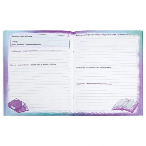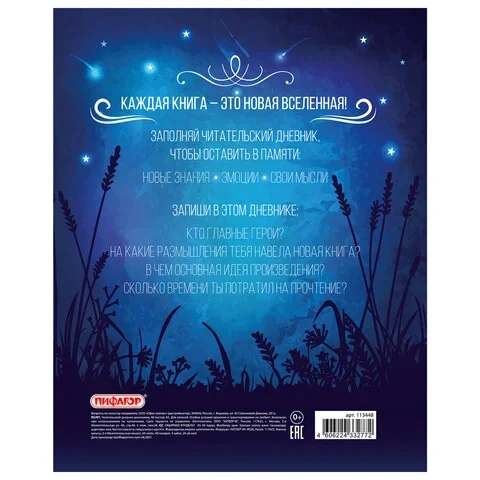Дневник Пифагор Мир книг читательский, А5, 40 листов, с цветным блоком