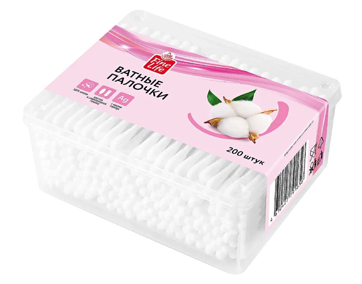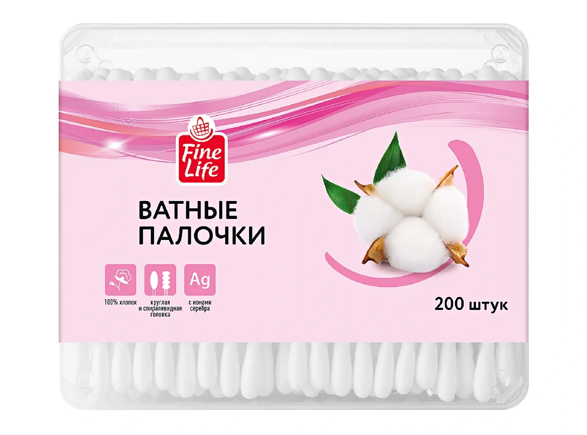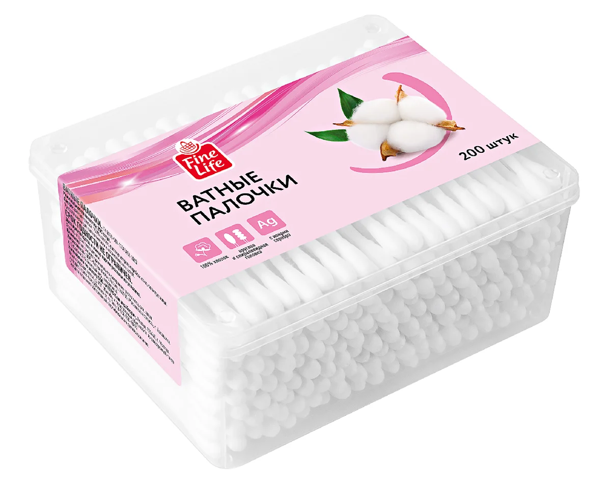 Fine Life Ватные палочки с ионами серебра, 200шт