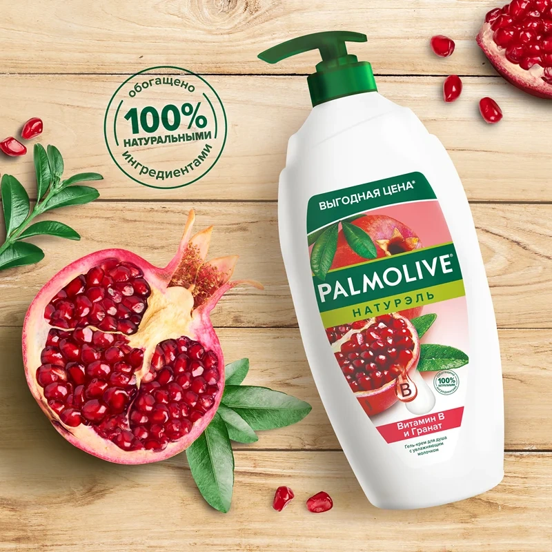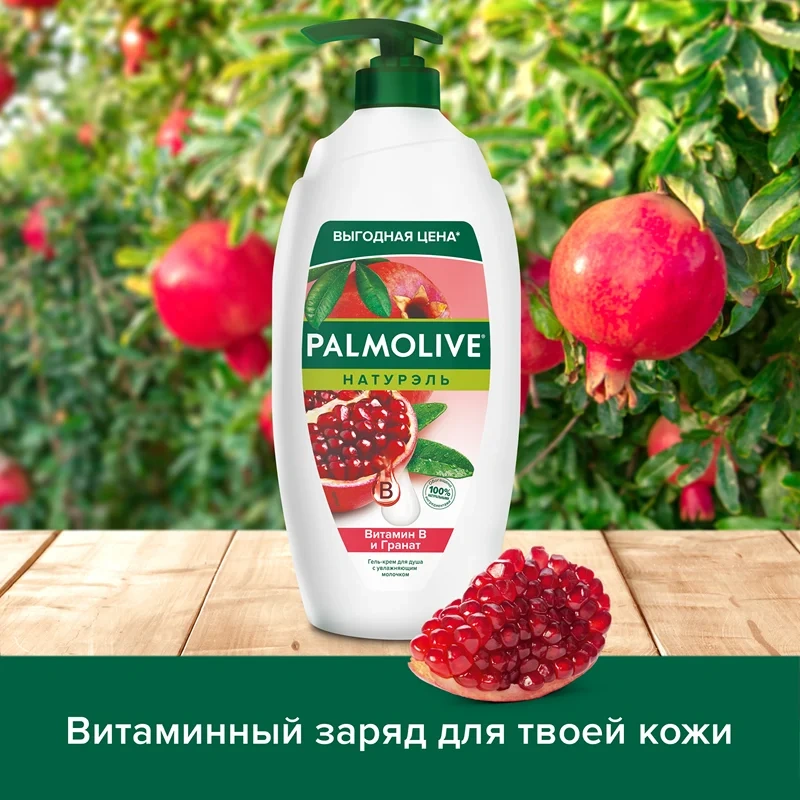 Гель - крем для душа Palmolive Натурэль Витамин B и Гранат с увлажняющим молочком, 750мл