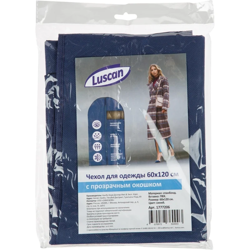 Чехол для одежды из спанбонда Luscan с окошком, 60х120см, синий, HD-HH009