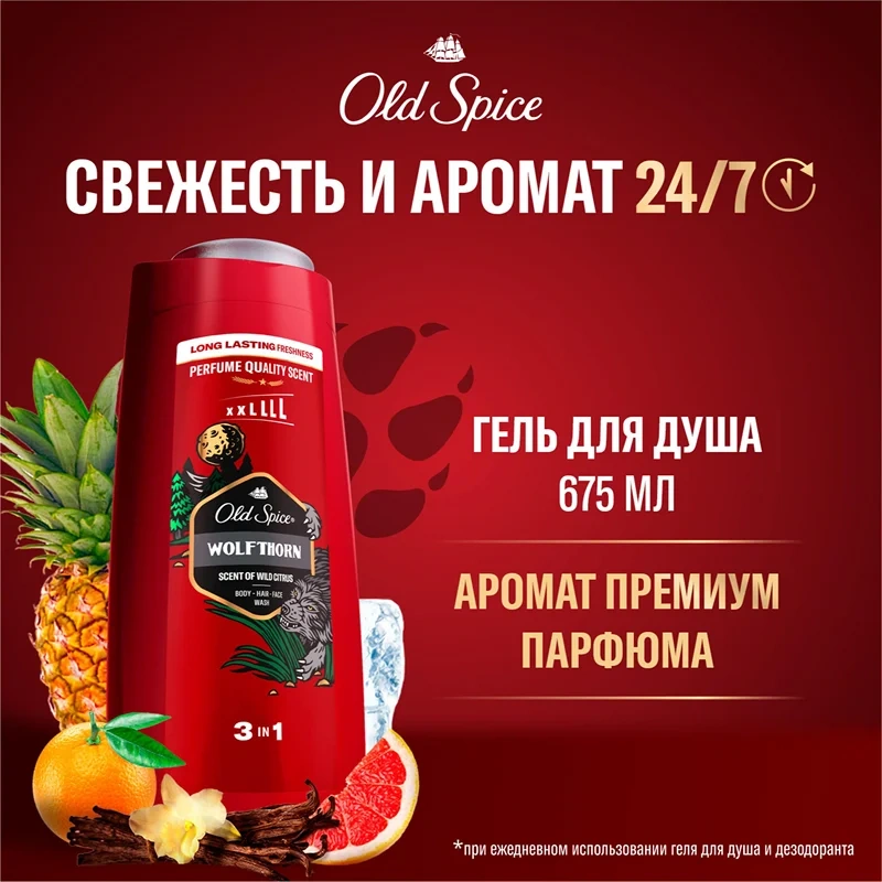 Гель для душа-шампунь мужской Old Spice Wolfthorn 3в1, 675мл