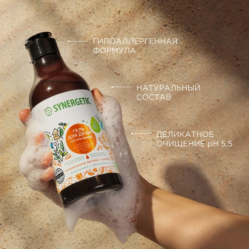 Гель для душа Synergetic Карамельное яблоко и ваниль, 380мл