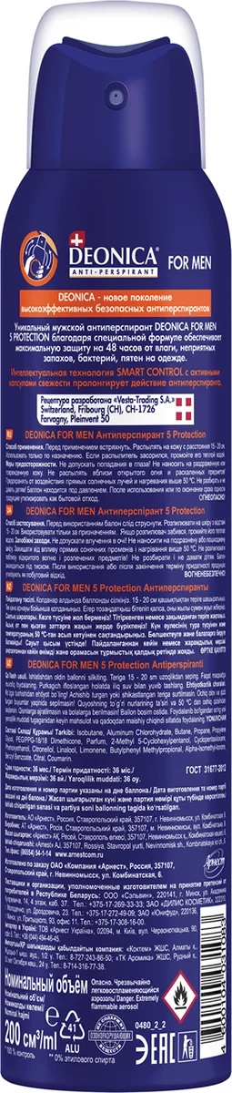 Антиперспирант Deonica For Men Max Protection 5в1 спрей, 200мл