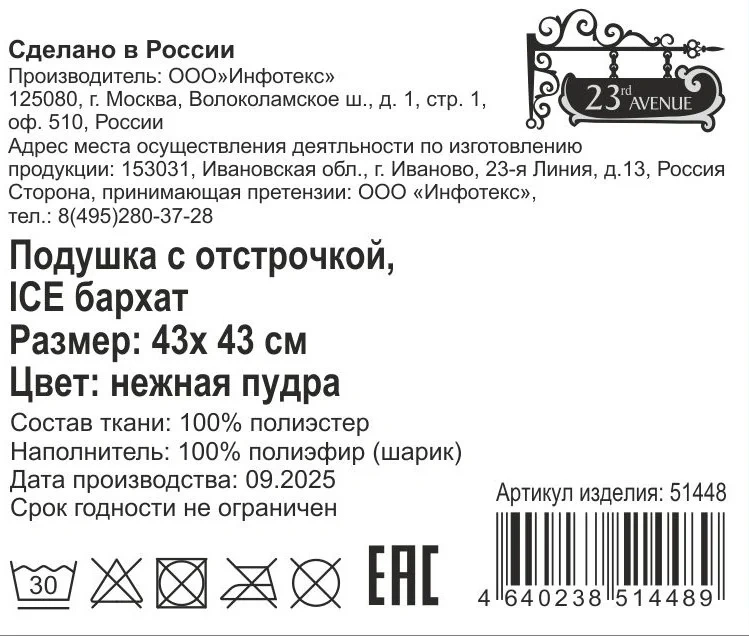 Tarrington House Подушка декоративная Ice Бархат нежная пудра, 43 x 43см