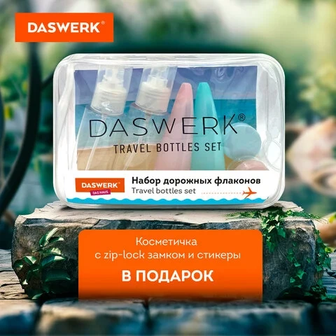 Дорожный набор флаконов в косметичке, 6 флаконов (2х80 мл / 2х60 мл / 2х10 мл), DASWERK, 609302