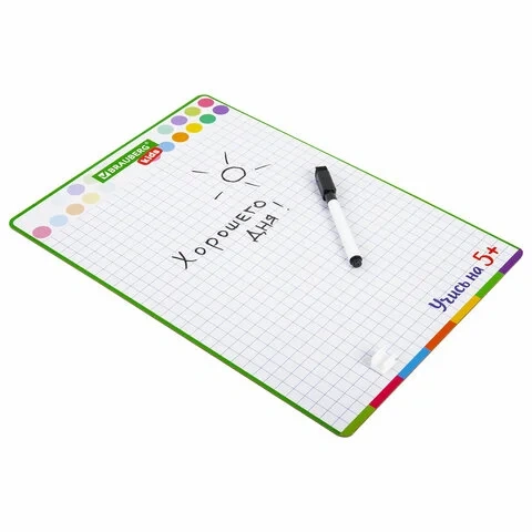Доска для рисования с маркером двухсторонняя, в клетку/белая, 24х34 см (А4), BRAUBERG KIDS, 238152
