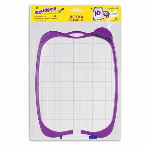 Доска для рисования с маркером и губкой, ЮНЛАНДИЯ, 190х270 мм, клетка, фиолетовая рамка, подвес, 236