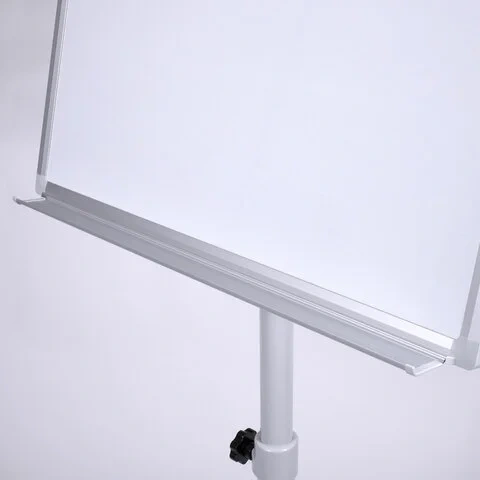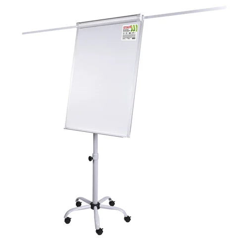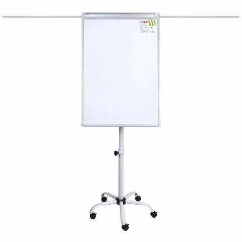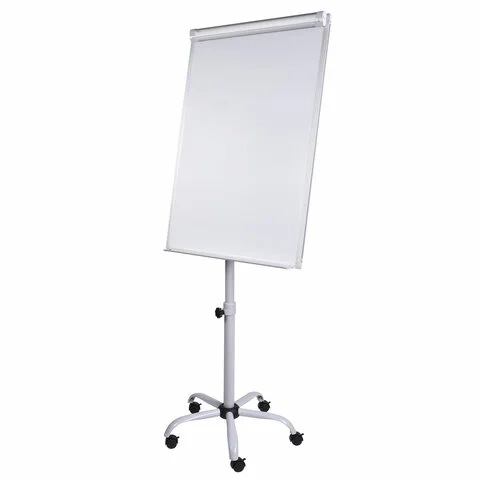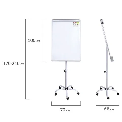 Белое лаковое покрытие предназначено для письма специальными маркерами для белой доски. Металлическая поверхность позволяет размещать объявления при помощи магнитов. Размер доски – 70х100 см. Регулируется по высоте от 170 см до 210 см. Устанавливается на пятилучии. В комплект входит лоток для аксессуаров и 2 дополнительных держателя для бумаги. Блокнот крепится при помощи двух пластиковых подвижных крючков. Перед началом работы необходимо удалить защитную пленку с рабочей поверхности доски-флипчарта.