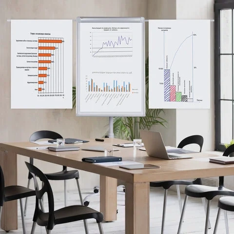Доска-флипчарт с дополнительными держателями для бумаги, магнитно-маркерная, 70х100 см, пятилучие, S