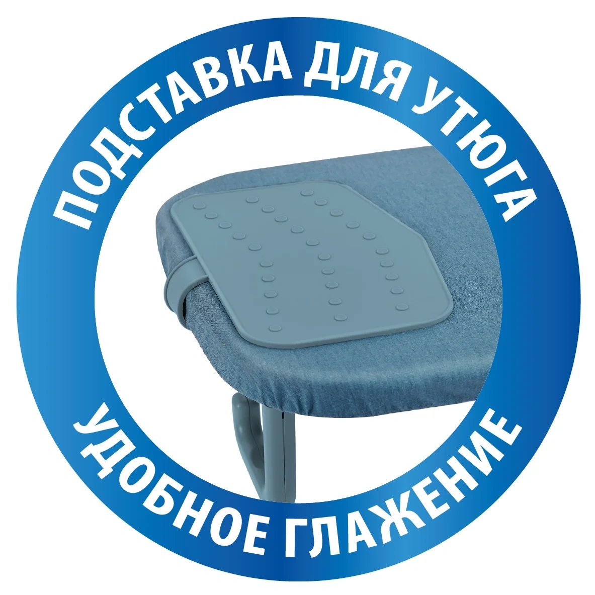 Прекрасно подходит для паровой станции, которая устанавливается на край гладильной поверхности. В случае использования утюга предусмотрена съёмная подставка из силикона. Надежные опоры из пластика обеспечивают повышенную устойчивость гладильной доски, не скользят и не царапают поверхность пола. Превосходное качество глажения обеспечивает чехол из 100% хлопка с металлизированным покрытием и упругой поролоновой подкладкой. Инновационная технология отражающей поверхности позволяет существенно сократить время глажения. Чехол надежно крепится на гладильной поверхности с помощью шнура и фиксатора.
