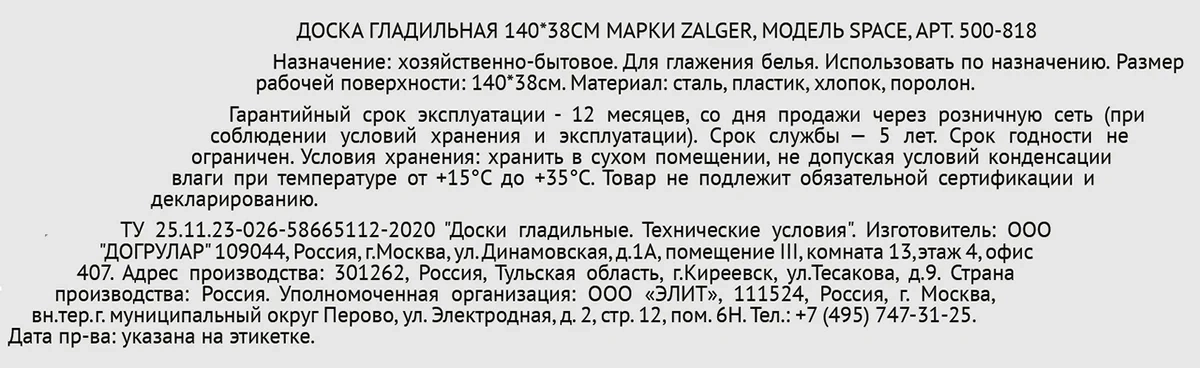 | Тип | гладильная доска |