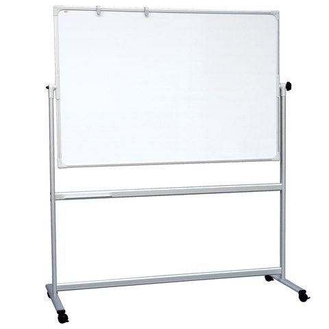 Лаковое покрытие предназначено для письма специальными маркерами для белой доски, а металлическая поверхность позволяет размещать информацию при помощи магнитов. Две рабочие магнитно-маркерные поверхности расположены на стенде. Перемещается на колесиках. Вращается в горизонтальной плоскости на 360 градусов. Алюминиевая рама придает доске необходимую прочность. Элементы крепления входят в комплект. Размер - 120х180 см. При должном уходе за рабочей поверхностью доски при помощи чистящей жидкости-спрея и стирателей '2х3' поверхность магнитно-маркерной доски прослужит более 10 лет.