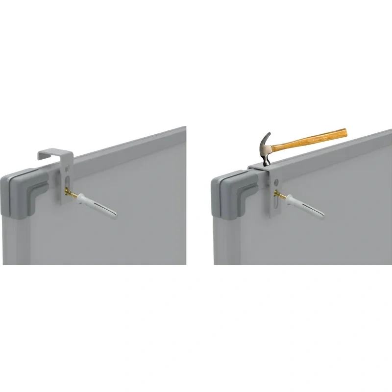 Доска обрамлена в металлический профиль серебристого цвета и скреплена пластиковыми уголками, что придаёт конструкции дополнительную прочность и эстетичный вид. В комплект входит полочка для маркеров и крепёжный набор для монтажа. Доску можно разместить как в вертикальной, так и в горизонтальной ориентации.