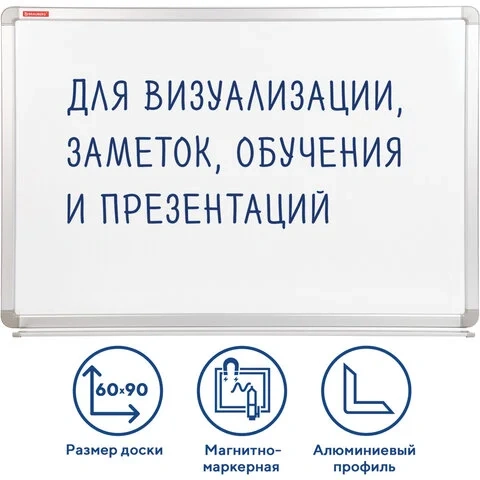 Доска магнитно-маркерная Attache (Attache Economy) размером 100x150 см односекционная с лаковым покрытием предназначена для настенного монтажа. Поверхность доски подходит для записи маркерами для белых досок и крепления информации с помощью магнитов. Ее легко очищать с использованием специализированных губок-стирателей и чистящего спрея.