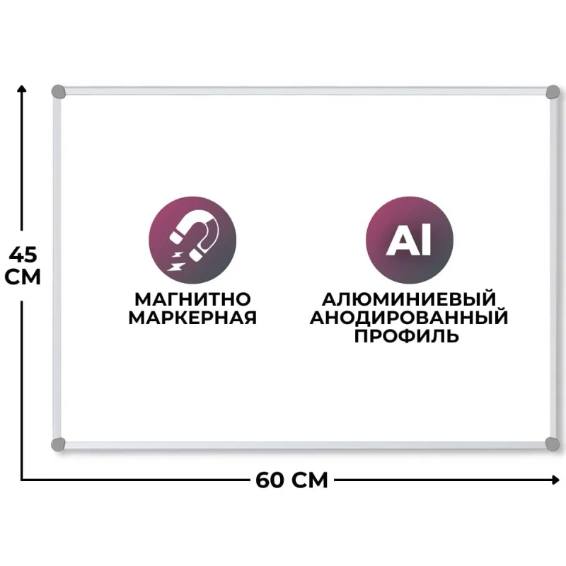 Доска магнитно-маркерная Attache Эконом 45х60см, белая, лаковая, алюминиевая рама, полочка