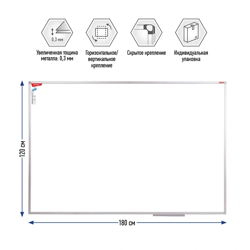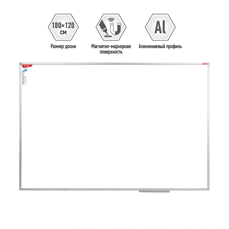 Доска магнитно-маркерная Berlingo Premium качества, 120*180 мм. Увеличеннная толщина магнитно-маркерной поверхности, ДВП основа. Полочка для аксессуаров и комплект креплений - в комплекте. Индивидульно упакована в пленку, в коробке - 1 штука. Гарантия на магнитно-маркерную поверхность - 10 лет.
