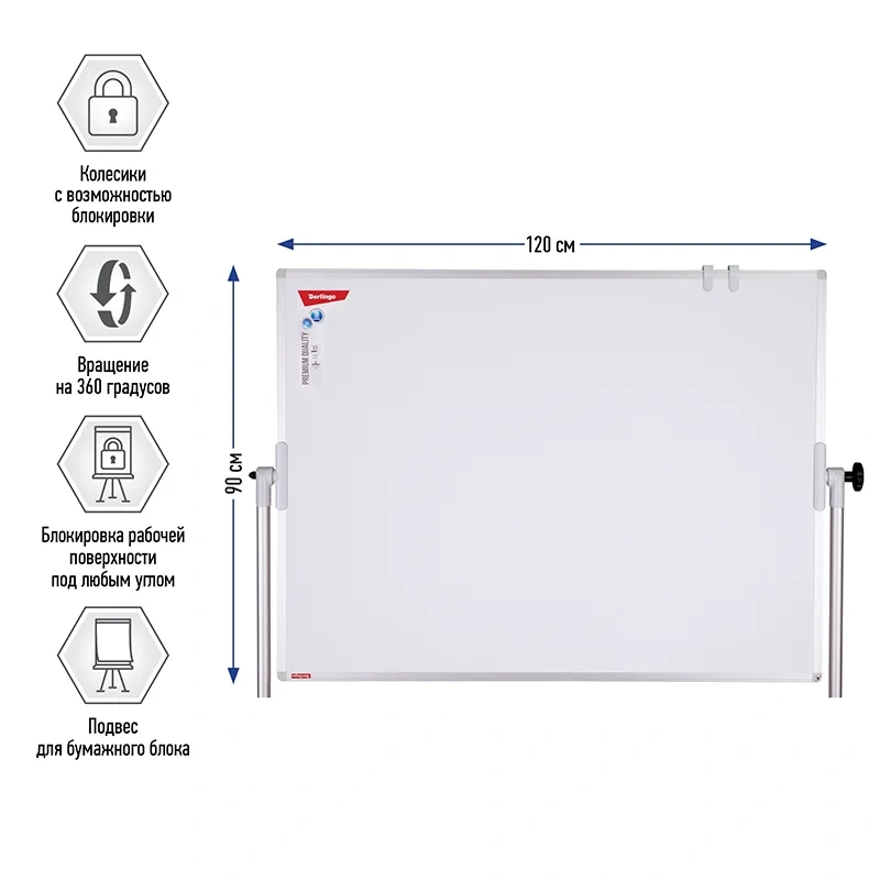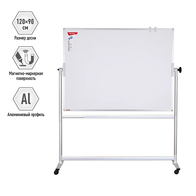 Доска магнитно-маркерная Berlingo Premium 120х90см, белая, лаковая, алюминиевая рама, на роликах