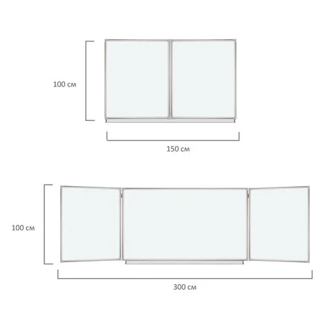 Лаковое покрытие предназначено для письма специальными маркерами для белой доски, а металлическая поверхность позволяет размещать информацию при помощи магнитов. Трехэлементная магнитно-маркерная доска имеет укрепленные пластиковые уголки, которые позволяют скрыть места крепления к стене. Центральная односторонняя секция – 100х150 см, двусторонние боковые секции – 100х75 см каждая. Алюминиевый профиль придает изделию дополнительную прочность и современный стильный внешний вид. Полочка для аксессуаров и элементы крепления входят в комплект. При должном уходе за рабочей поверхностью доски при помощи чистящей жидкости-спрея и стирателей BRAUBERG поверхность магнитно-маркерной доски прослужит более 10 лет.