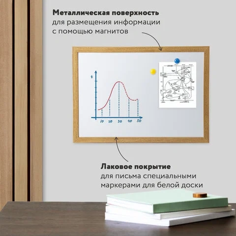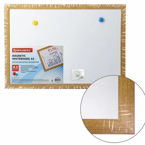 Доска магнитно-маркерная Brauberg 34.2x48.4см, белая, лаковая, деревянная рама