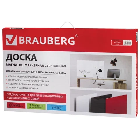 Доска стеклянная Brauberg 60х90см, красная, 236749