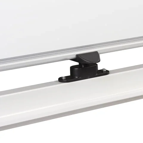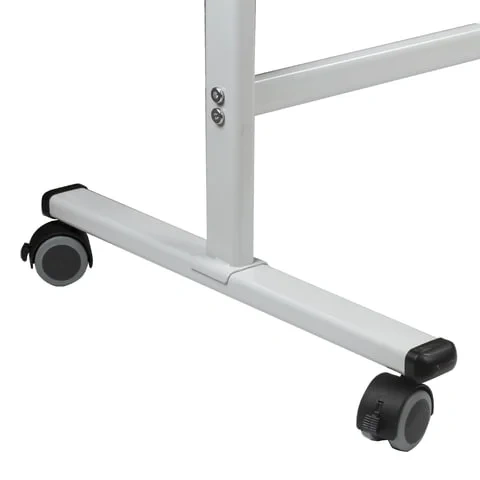 Доска вращается в горизонтальной плоскости на 360 градусов и перемещается на колесиках, что обеспечивает удобство использования и перемещения в помещении. Алюминиевая рама придает доске необходимую прочность.