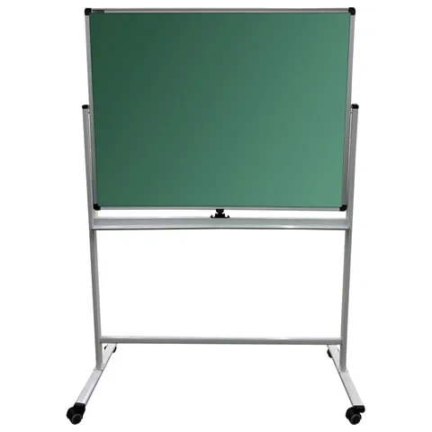 - двусторонняя: белое лаковое покрытие предназначено для письма специальными маркерами для белой доски, зелёное - для письма мелом;
