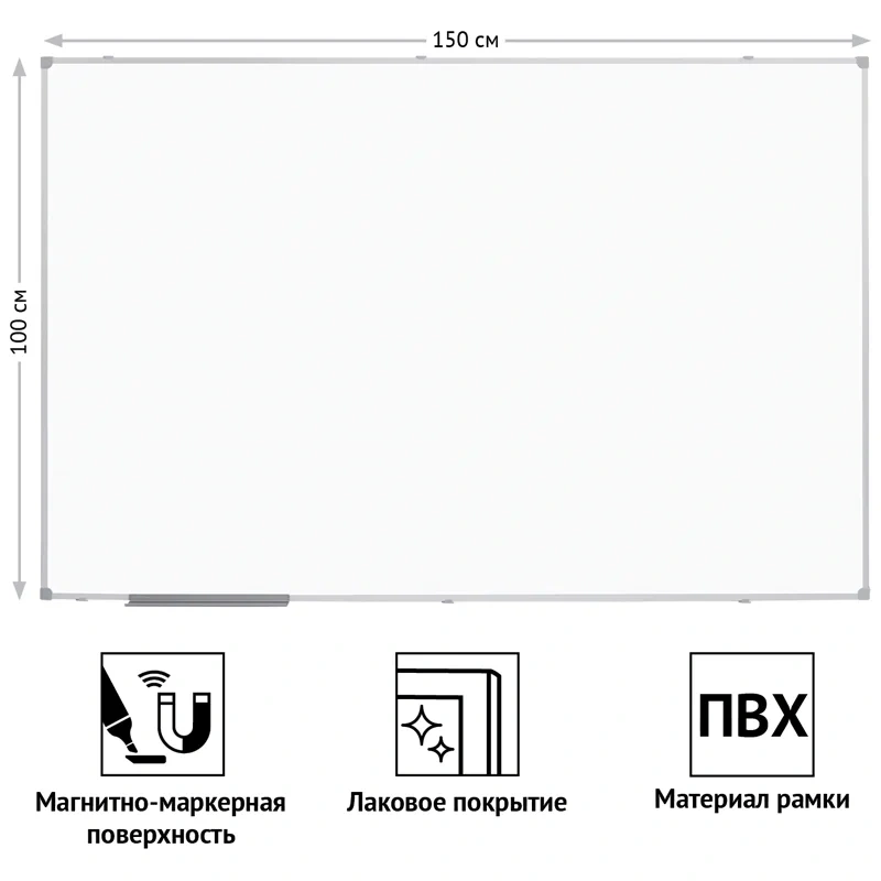Доска магнитно-маркерная Officespace 150х100см, белая, лаковая, алюминиевая рамка, полочка