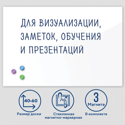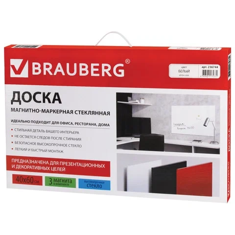 Доски стеклянные Brauberg 40х60см, белая, 3 магнита