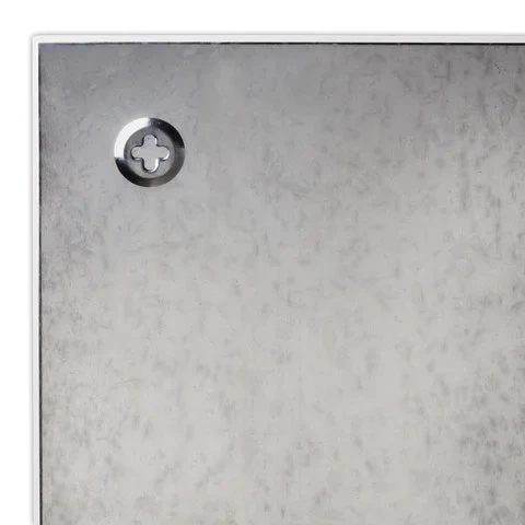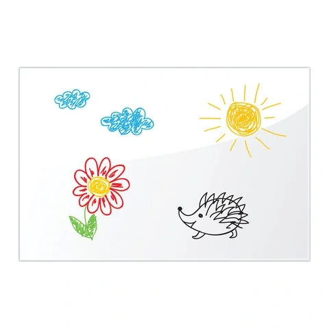 Рабочая поверхность белого цвета изготовлена из небьющегося стекла. Размер доски - 40х60 см. Надежно упакована в защитную пленку и красочную подарочную коробку с ручкой. 3 специальных неодимовых магнита и элементы крепления входят в комплект. Скрытый тип крепления с задней стороны поможет вписать доску в любой интерьер.