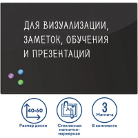 Доски стеклянные Brauberg 40х60см, черная, 3 магнита
