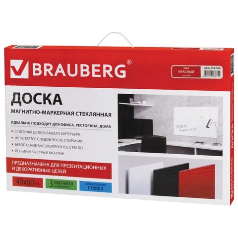 Доски стеклянные Brauberg 40х60см, красная, 3 магнита
